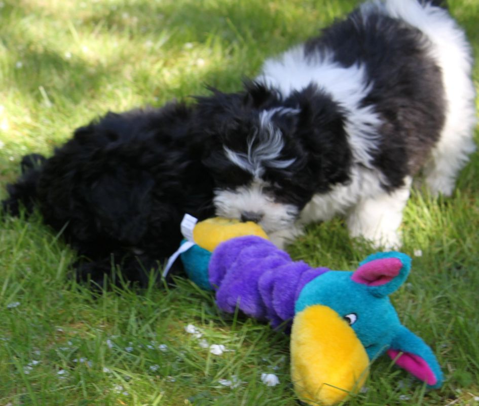 The teddy bear dog is a hybrid designer dog with a soft silky semi hypoallergenic coat. As adults they usually weigh between 8 and 16 pounds. Combining these two breeds seems to have formed a type of super companion dog that is the most loyal and loving dog in the world.